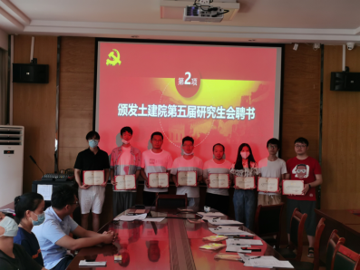 (通讯员王博)9月11日中午12:30在213会议室举行了j9com九游会研究生会换届大会,为土建院第五届研究生干部颁发证书,并公布土建院第六届研究生会干部名单。以便打造一支和谐、高效、团结、向上的研究生会工作团队,丰富学校学生的课余文化生活,营造良好的校园氛围。